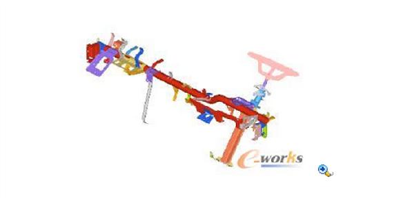 转向系统是汽车系统中一个非常重要的子系统,作为用户与车辆间的“桥梁”,其性能的优劣直接影响到汽车的品质和用户的驾驶体验。转向系统在行驶过程中会受到发动机、路面等多种激励的综合影响,如果其设计刚度不足、模态偏低,就容易产生怠速抖动或低速行驶抖动等NVH问题。因此,在设计转向系统时,会采用CAE分析的方法来验证其性能。