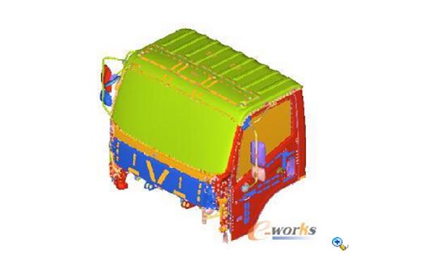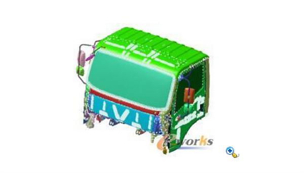 车身采用shell单元进行网格划分、铸件采用solid单元进行模拟、焊点采用acm单元进行模拟、粘胶采用实体单元进行模拟。如图1、图2所示: