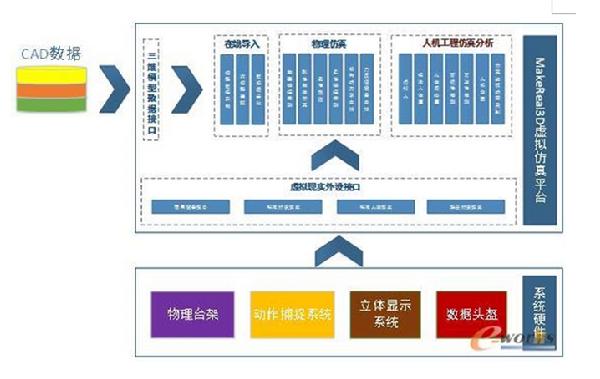 因此,为了满足工业用户的应用需要,我们特别提出了基于物理台架的虚拟现实仿真系统这样的解决方案。一方面,该解决方案具有所有传统虚拟现实仿真系统的功能和特点,例如沉浸式立体显示、实时驱动数字人体等;另一方面,该解决方案还提供物理台架,可以给用户提供实际的操作反馈,从而使得“虚拟”与“现实”真正地交互起来,获得更好的用户体验,更高的操作仿真度,并且使分析评审的结果更为真实、可信。