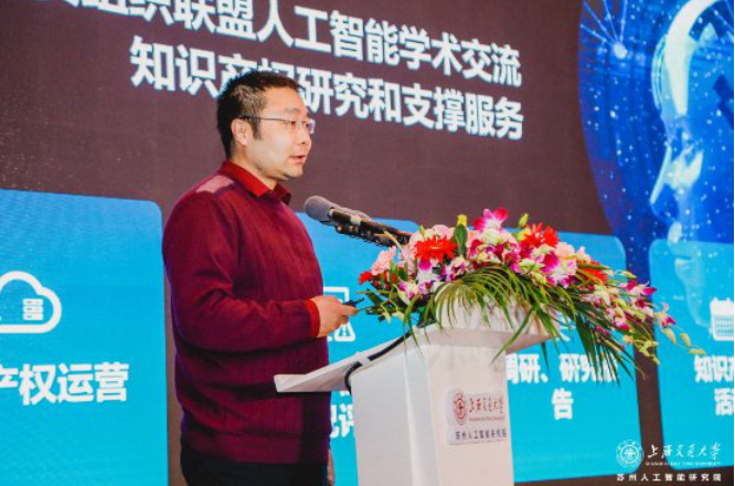 随后,中国人工智能产业发展联盟办公室主任石霖为大家介绍了白皮书的编撰背景并对智研院寄予了极大的期望。“《中国人工智能产业知识产权白皮书(2019)》由AIIA联盟组织、上海交通大学苏州人工智能研究院牵头,联合20余家单位60多位专家共同编制而成,对人工智能领域知识产权问题进行了系统探讨,白皮书的发布将对人工智能领域知识产权发展发挥重要的指导性作用。希望智研院借此白皮书发布,搭建一个由中国人工智能产业发展联盟指导、产业深度参与的人工智能产业知识产权交流平台,帮助中国人工智能产业的知识产权保护持续快速发展。”
